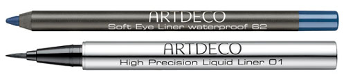 Два водостойких карандаша для глаз в оттенках # 62 и # 84, а также жидкий лайнер в черном цвете.