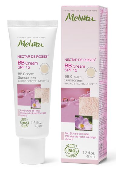 Melvita запустила в продажу BB-крем Розовый нектар «Сияние и красота» SPF 15 - первый органический BB-крем, который позволяет коже дышать. Легкая, как лепесток розы текстура, прекрасно ложится и мгновенно впитывается, матируя, увлажняя и сохраняя естественный баланс кожи. Мельчайшие частицы крема не забивают поры, а цвет лица становится ровным и сияющим.
