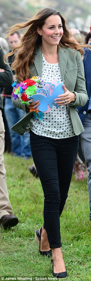 Кейт Миддлтон пришла на свое первое, после родов, мероприятие в пиджаке Ralph Lauren, топе Zara и джинсах Paige. При этом, герцогиня, как всегда, светилась счастьем, на ее лице не было ни следа пост-родовой усталости.