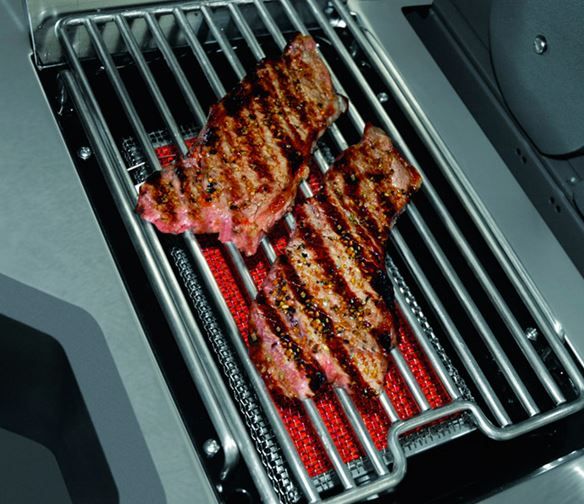Кроме того, почти все газовые грили Napoleon снабжены инфракрасными горелками, на каждой из которых располагаются тысячи мельчайших отверстий, пламя из которых поглощается керамической поверхностью. Эта поверхность моментально накаляется и в результате достигает температуры 850 градусов! Результат очевиден — Вы получаете сочное и ароматное блюдо за ощутимо меньшее время приготовления!