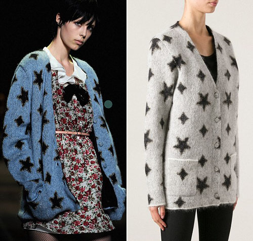 Новые кардиганы от Saint Laurent узнаваемы, и уже стали такой же знаковой вещью как сумочки Chanel или шпильки от Manolo. Вещь простая, но каждая модница узнает дорогую вещицу от престижной марки по «звездам».