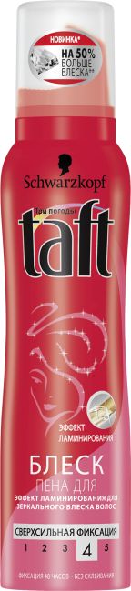 Пена Taft Блеск Эффект Ламинирования сделает волосы упругими, послушными, гладкими и сияющими. Благодаря защитной пленке, образующейся на поверхности волоса, укладка получит блеск, усиленный в полтора раза.