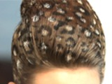 Через пару месяцев роспись по волосам была повторена, и тем же самым стилистом – на показе Rodarte Весна 2014, на этот раз это были полосы как у зебры.
