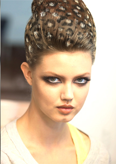 Впервые анималистический принт на волосах мы увидели на показе Jean Paul Gaultier Весна/Лето 2014. Идея принадлежит стилисту показа Одиль Жильбер.