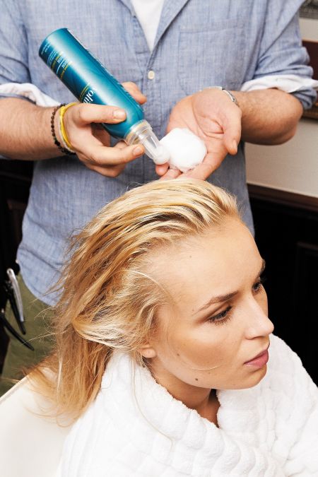 Перед тем как начать укладку, нанесите John Frieda Luxurious Volume Лосьон-спрей для прикорневого объема.