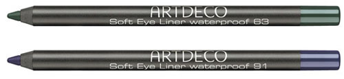 Водостойкий лайнер для глаз SOFT EYELINER WATERPROOF в двух оттенках No.63 изумруд и No.91 сине-фиолетовый.