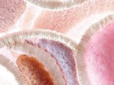Материал изготавливался вручную в швейцарской мастерской. Его текстура – это вышивка. Каждый фрагмент узора – лоскуток в виде цветка из органзы, пришитый роскошной пряжей (на каждый элемент ушло не менее 3 метров люксовых ниток). Материя с вышивкой для платья создавалась тремя мастерицами в течение недели.