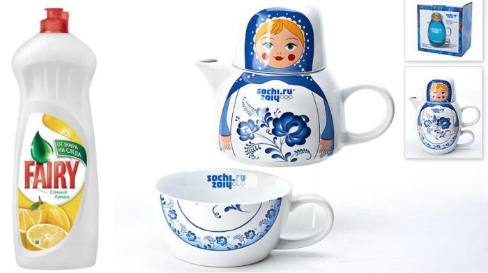 11 победительниц нашего конкурса получат в подарок призовой набор от Fairy - эффективное средство для мытья посуды Fairy Лимон (1 литр) и чайный набор с олимпийской символикой.