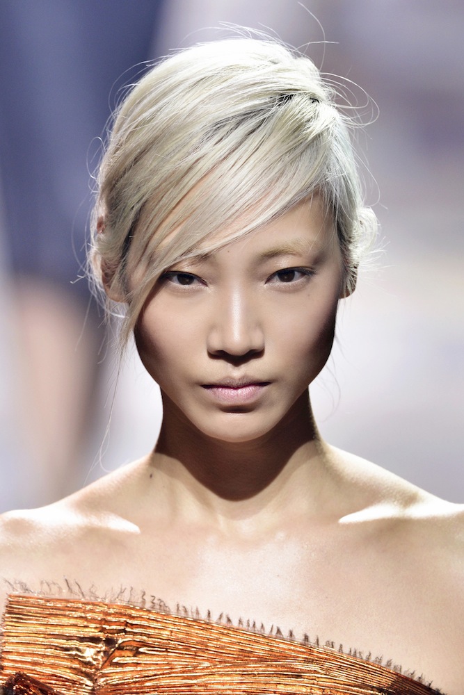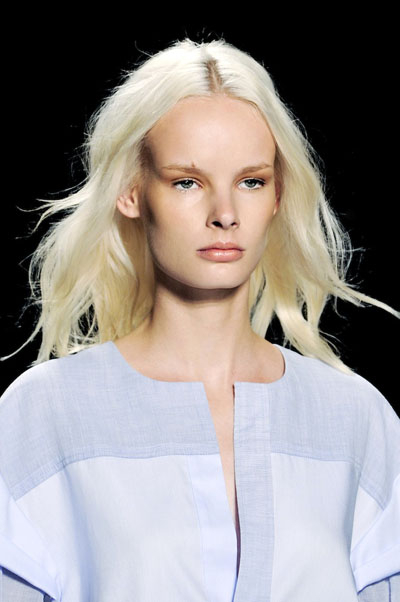 Этим летом в тренде блондинки. Только цвет должен быть безо всякой желтизны или теплых бликов. Нужен полностью выбеленный блонд. Тогда это будет цвет Лета-2014. Судите сами, подиумы даже не намекают, а настоятельно советуют попробовать новый оттенок: