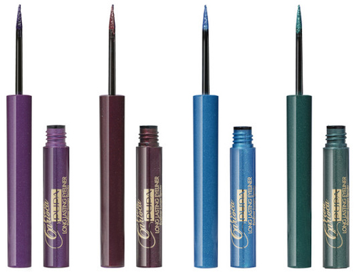 Стойкий лайнер для глаз LONG LASTING EYELINER в четырех оттенках: 001 Flashes Bronzer, 002 Exotic Purple, 003 Parrot Blue, 004 Electric Green.