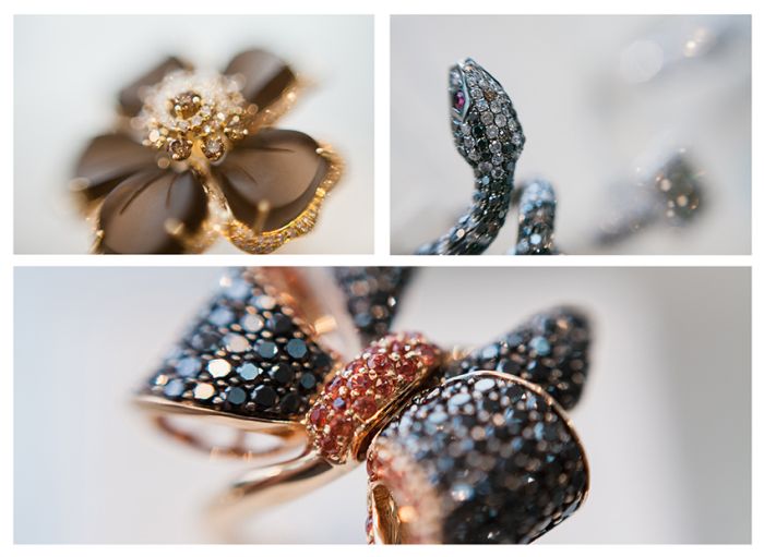 В коллекции представлены серьги, кольца и браслеты. При создании ювелирных изделий использовалось золото высочайшей пробы, а также драгоценные камни: бриллианты, сапфиры, изумруды, танзаниты, аметисты. Они олицетворяют истинную женственность, как и муза коллекции – Ольга Кабо.