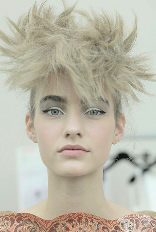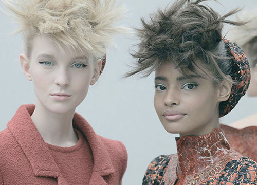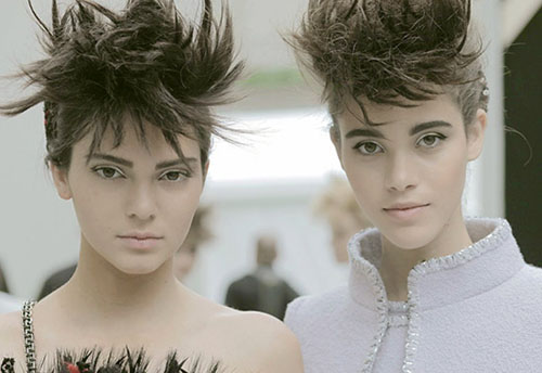 Для своего кутюрного показа Chanel Карл Лагерфельд выбрал смелый драматический образ моделей: панковские прически и яркие тени металлик.