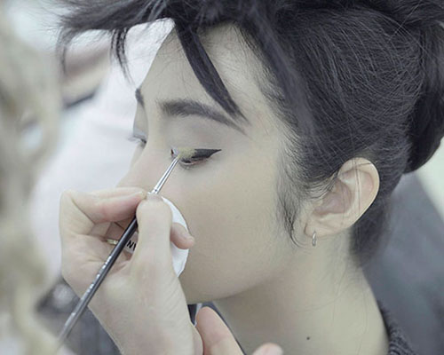 В центре внимания нового образа – «крылатая» черная подводка глаз в сочетании с тенями оттенков золота и серебра, а также обнаженные губы. Карлу Лагерфельду понравилось такое решение: «Все выглядит как современные скульптуры или творения Ле Корбюзье: инновационные материалы, но с элементами барокко».