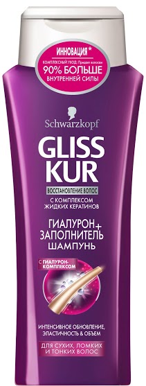 Средства линии Gliss Kur Гиалурон + Заполнитель восстанавливают каждый волос изнутри, благодаря комплексу жидких кератинов и гиалуроновой кислоте. Их эффективность обеспечивается трехфазным действием формулы: гиалуроновая кислота проникает в волос на клеточном уровне, заполняет поврежденные участки и укрепляет волос изнутри, обращая вспять процессы старения. Таким образом, Gliss Kur Гиалурон + Заполнитель повышает эластичность волос и способствует сохранению естественного объема.