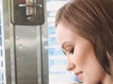 Съемки проходили в обычном кафе, Оливия в платье от Roberto Cavalli.