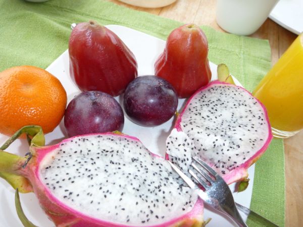 Лена Ленина: «Необычность моей новой диеты заключается в том, что состоит она из редких фруктов, которые не только в России, но и в Париже трудно купить: фрукт дракона, папайя, мангустин или дуриан. Также в нее входят и менее редкие манго и сливы. И так целый день. Ну, еще пару вареных яиц утром с полстаканчиком обезжиренного натурального йогурта. А по вечерам кусочек свежевыловленного и слегка обжаренного тунца с зеленью. Зато экзотические фрукты сколько угодно и целый день. Некоторые из них очень необычные. Например, фрукт дракона, Dragon Fruit, или питахайя. Дерево на котором растет этот фрукт с выдающейся внешностью - это кустистый древовидный кактус, на концах стеблей которого созревают сочные плоды. Забавно то, что цветки на нем появляются строго в первый и пятнадцатый день месяца. Цвет мякоти бывает белый или розовый, цвет кожицы - от красного до оранжевого, а на поверхности фрукта есть небольшие выросты и тонкие цветные чешуйки. Мякоть плодов наполнена маленькими черными семечками, которые принято вычищать. Вкус питахайи очень нежный и деликатный, не ароматный, ненасыщенный, чуть сладкий. Привлекательные на вид плоды фрукта дракона активно используются местными аборигенами в кулинарии, а сок питахайи смешивают с лимонным и лаймовым для приготовления напитков. Я же обычно разрезаю плод на дольки, подобно тому, как нарезают дыню, или вычерпываю мякоть ложкой. Хотя семена питахайи богаты ценными липидами, обычно они не перевариваются, если только их не разжевать. Кожицу не едят. Фрукт дракона - низкокалорийный диетический продукт, в 100 г которого насчитывается всего 45 кКал, поэтому для желающих постройнеть он очень полезен.