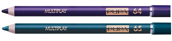 Универсальный карандаш MULTIPLAY в двух оттенках: Deep Purple и Peacock.