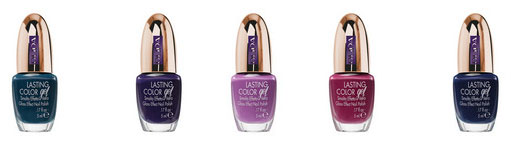 Лак для ногтей LASTING COLOR GEL в пяти стойких цветах: 089 Deep Blue, 088 Deep Purple, 090 Peacock 091 Lilac, 092 Velvety Fuschsia.
