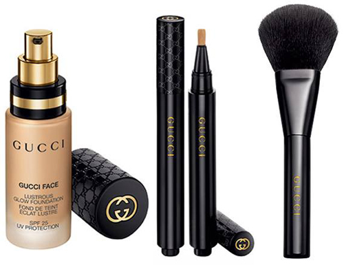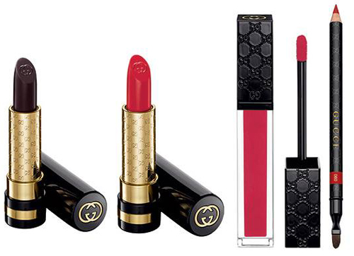 Макияж от Gucci – это несколько палитр теней (одноцветные, двухцветные и четырехцветные), два вида губной помады, блеск-лак для губ, ручка-консилер, компакт-пудра, жидкая тональная основа, румяна, бронзер. Будут также карандаши для глаз и губ, жидкий лайнер, тушь для ресниц и кисти для макияжа.