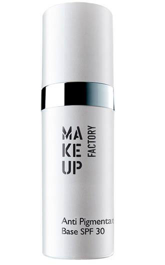 - Праймер Make Up Factory Anti Pigmentation Base SPF 30. Прозрачное гелевое средство подготавливает кожу к макияжу, быстро впитывается и противостоит пигментации.