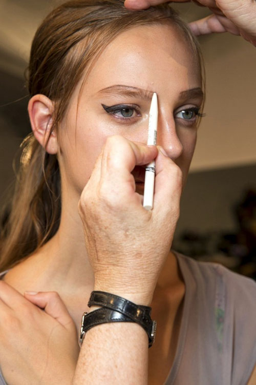 А вот, абсолютно новый прием в макияже для бровей – это то, чем показ культовой марки приятно удивил.