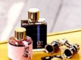 Флакон женского парфюма украшен кожей розового цвета и подвесками-чармами. Флакон мужского аромата декорирован черной крокодиловой кожей и двумя полосками, которые напоминают нам о старинных чемоданах.