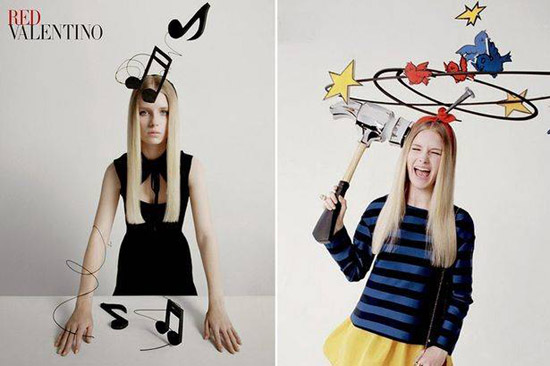 Red Valentino – линия модной молодежной одежды, которая выпускается под современным брендом Maison Valentino. Идея кампании с участием Лотти – мультяшные и смешные образы.