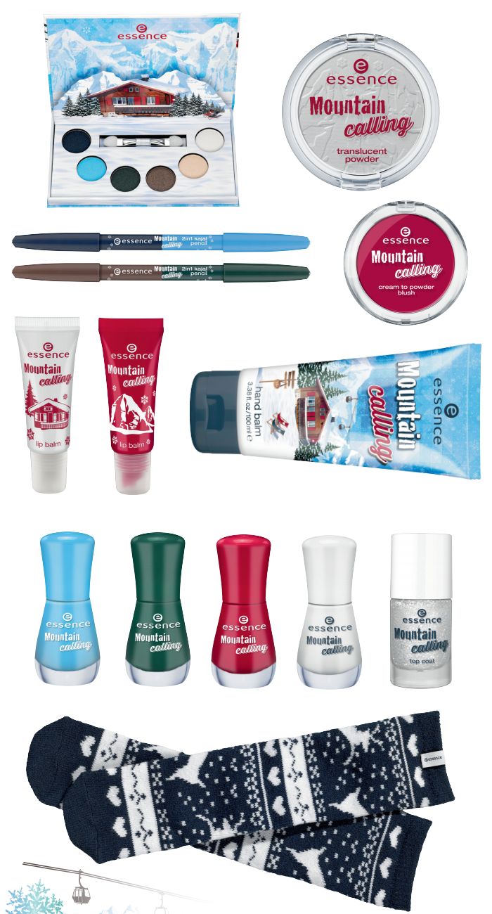 Настало время покорять склоны! В декабре 2014 года держим путь в горы с новой коллекцией mountain calling от essence. Покатайся на лыжах или отправься в поход! Палитра коллекции, состоящая из белого, голубого, красного и темно-зеленого оттенков, не только поможет сделать отличный макияж, но и подарит по-настоящему зимнее настроение!