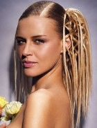 Эта прическа - традиционный конский хвост с искусной смесью прямых и английских локонов. Прическа, которая придаст маленький акцент рок-н-ролла невесте.