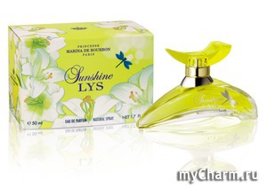 Sunshine Lys - новый аромат для женщин от известного французского парфюмерного бренда Marina de Bourbon. Парфюмерная композиция Sunshine Lys от Marina de Bourbon («Солнечная лилия» от Марина де Бурбон) была создана в 2012 году и вошла в группу ароматов цветочные зеленые. Этот светлый и жизнерадостный аромат будет идеально сочетаться с одеждой светлых тонов и станет незаменим в жаркую погоду... Читать полностью |