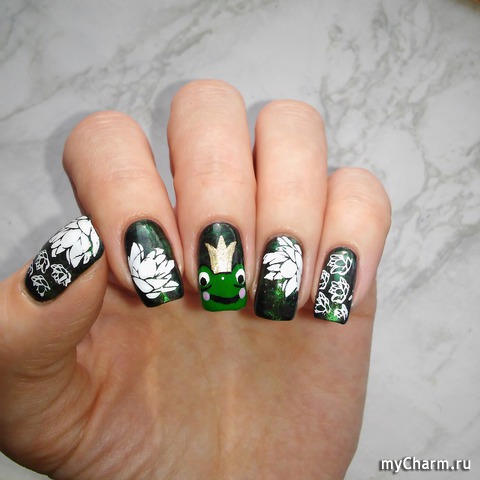 ну там же рисованная только лягушка, вазюкается быстро, главное потом все просушить хорошо, а лилии - это стемпинг, тоже недолго, так что в принципе на готовой основе я управилась где-то за час наверное