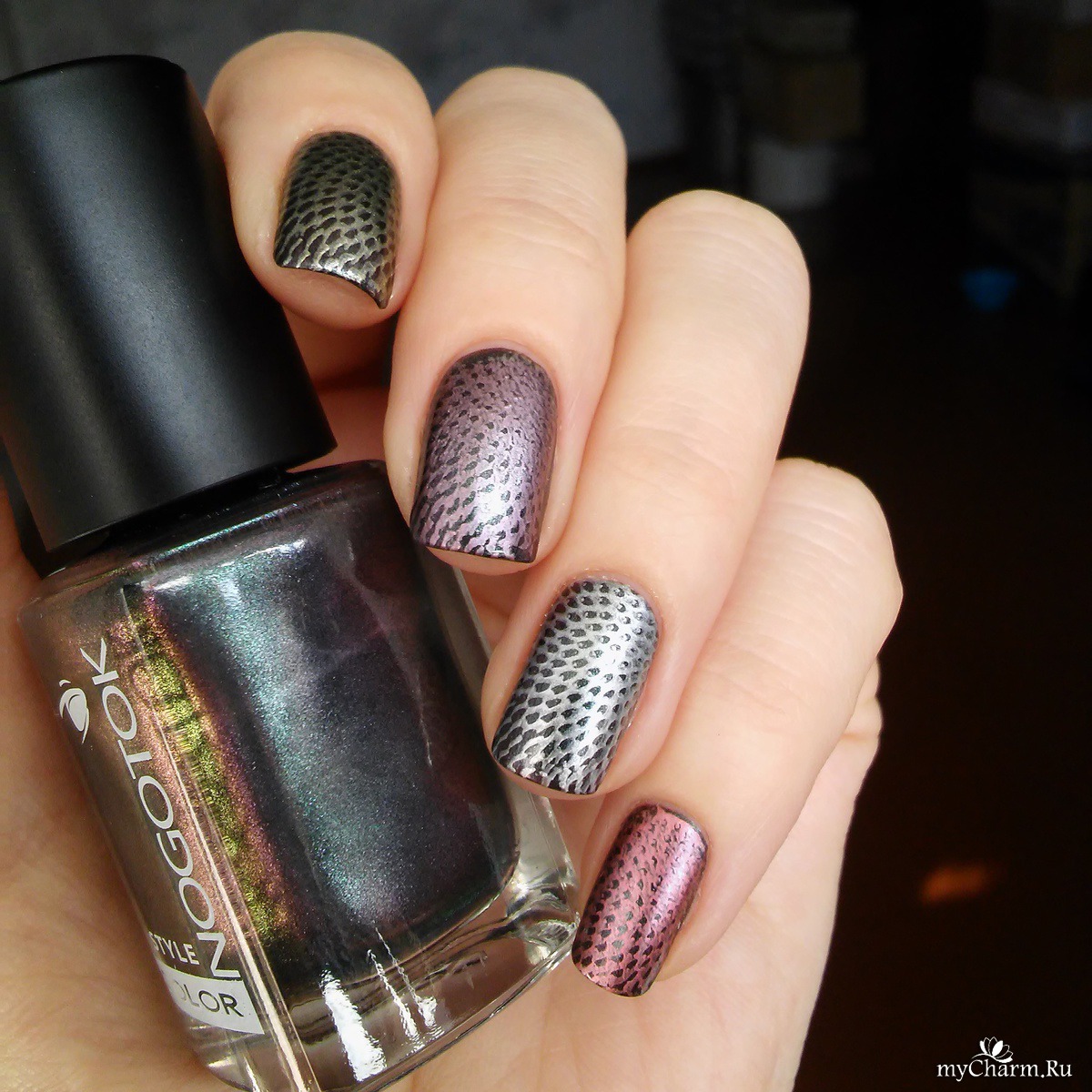 там на бутылечке видишь перелив на ребре? вот такие цвета переливаются и на ногтях