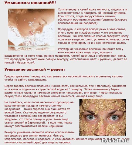 Я умываюсь овсянкой. Мне очень нравится!!!