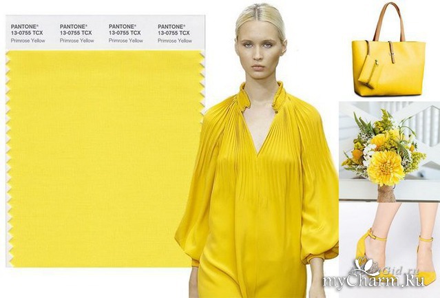 В противопоставление холодному и загадочному оттенку Niagara эксперты Института Pantone предложили теплый и жизнерадостный модный цвет 2017 в одежде Primrose Yellow. Название оттенок получил в честь цветка. Желтая примула - невероятно позитивный и солнечный оттенок. Он вдохновил в весенне-летнем сезоне многих дизайнеров, среди которых Alexis Mabille, Max Mara, Lacoste. Более того, модный желтый цвет стал фаворитом для свадебных стилистов.