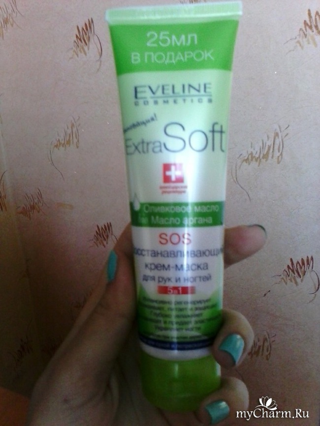 Увидела я вот такую новинку от Евелайн : Маска крем для рук. Евелайн мне нравится своим средством для роста ногтей, поэтому я подумала, что крем будет тоже хорош и не прогадала. Крем просто супер! На руках не остается жирной пленки и вязкости как это бывает у некоторых питательных кремов. Можно использовать не только как крем для рук, но и как маску. Для этого нанести нужно крем тонким слоем на руки, а затем желательно одеть перчаточки) И ручки будут просто супер! Крем питает не только кожу рук, но и наши ногтики.