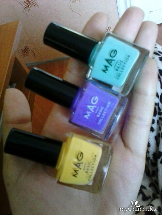 Зашла в сеть магазинов Watsons в Украине и купила себе вот таких три супер летних оттенка от MAG лаки просто шикарные у них! А эти оттенки смотрятся как гель лак!!! Просто супер, теперь моя любовь)