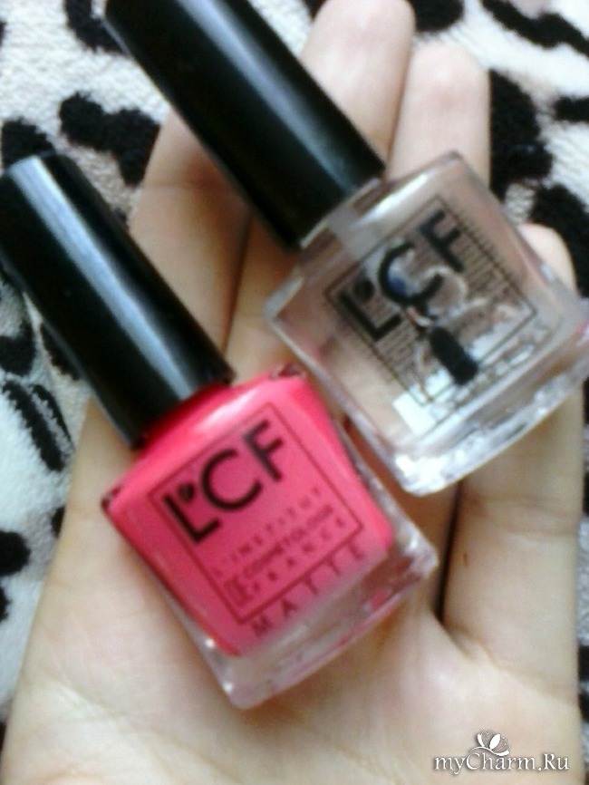 Купила вот такой закрепитель и матовый оранжево-корраловый цвет лт фирмы LCF/ Тоже довольно не плохой лак)