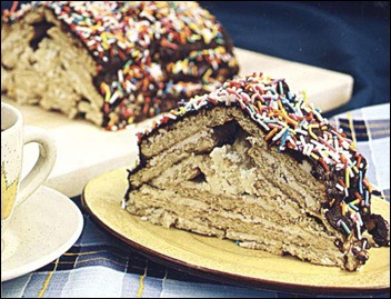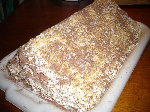 А этот тортик называется - Шалаш. По принципу приготовления очень похож на ваш. Вот такой