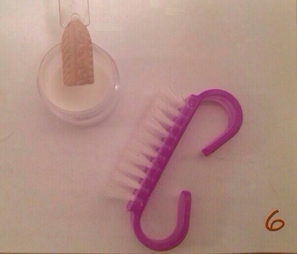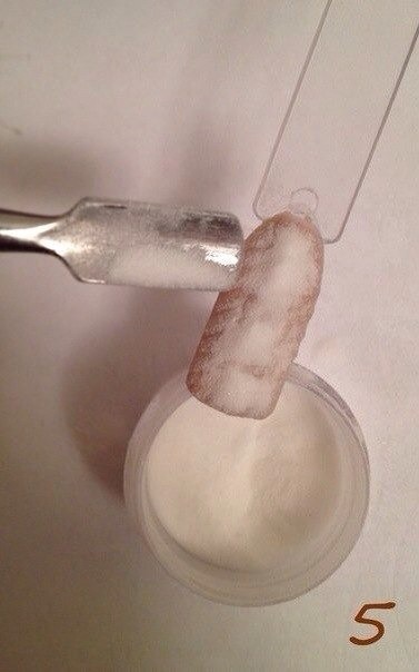 4. Посыпаем пока не высох лак акриловой пудрой, сушим в УФ лампе