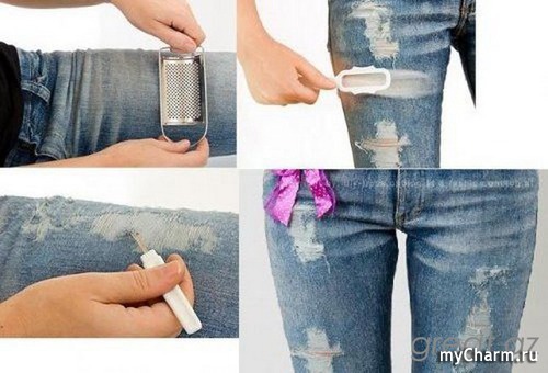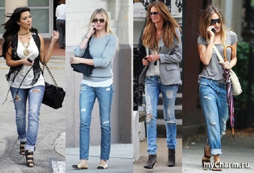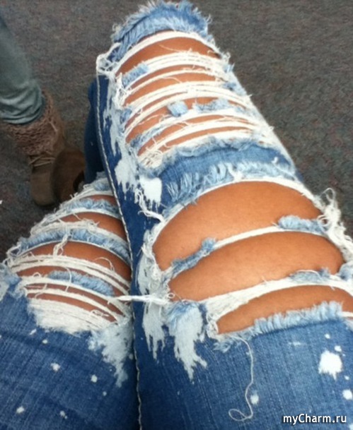 А недавно видела девушку в рваных джинсах, но тк было еще холодно для "голых"ног, то на ней были колготки. Кстати смотрелось интересно, тк колготки были практически одного цвета с джинсами.