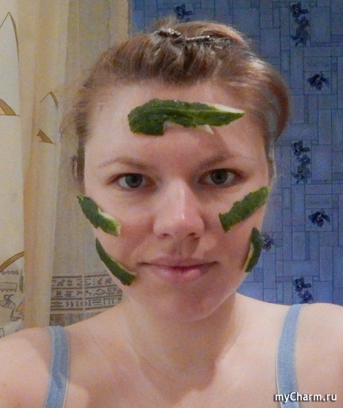 Затем нанесла на предварительно очищенную кожу лица (я протерла лицо огуречными кожурками) и оставила на 20 минут.