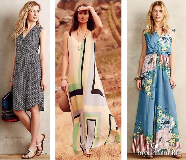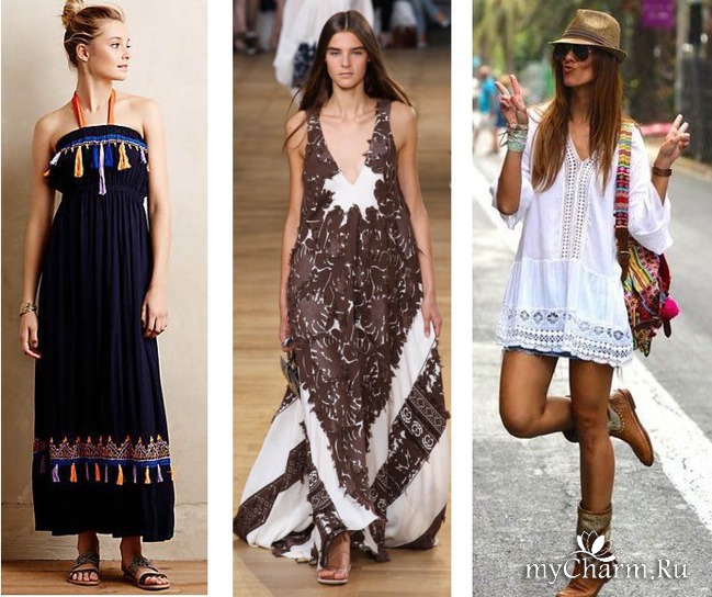 Отпуск в летние дни даёт нам необычайную возможность отбросить офисные дресс-коды. И такой возможностью нужно обязательно воспользоваться. Поэтому выбираем свободные в крое сарафаны и платья с завышенной талией, которые изящно подчеркнут грудь и визуально удлинят ноги. А для придания фигуре ещё большей стройности можно использовать пояс. Лидирует в этом сезоне стиль «Бохо» с его бахромой. Ведь летом главное – это детали!