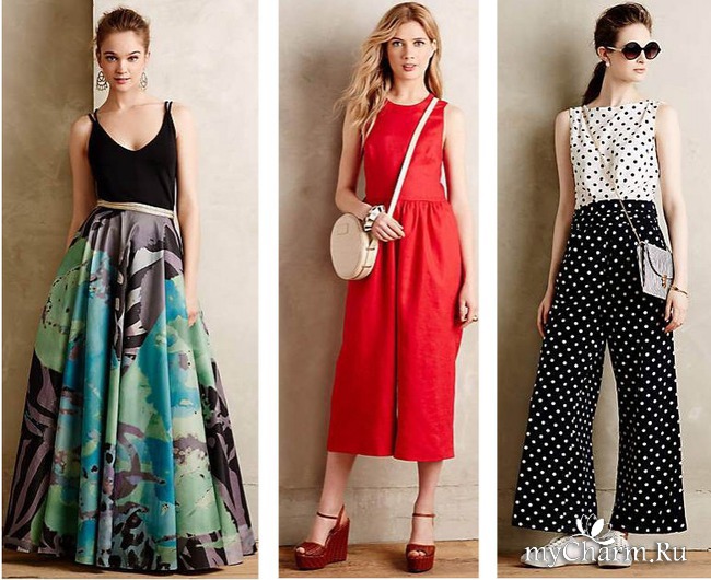 Не забываем о трендовых широких брюках-кюлотах и сандалиях на высокой подошве.