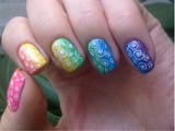 А потом мне подумалось, что нет предела совершенству и решила добавить стемпинг. Сказано - сделано. Штампик у меня конадовский, вместо скребка - пластиковая карта. Рисунок с плиты легко и четко отпечатывается, поэтому через 10 минут я уже покрывала ногти слоем топа.