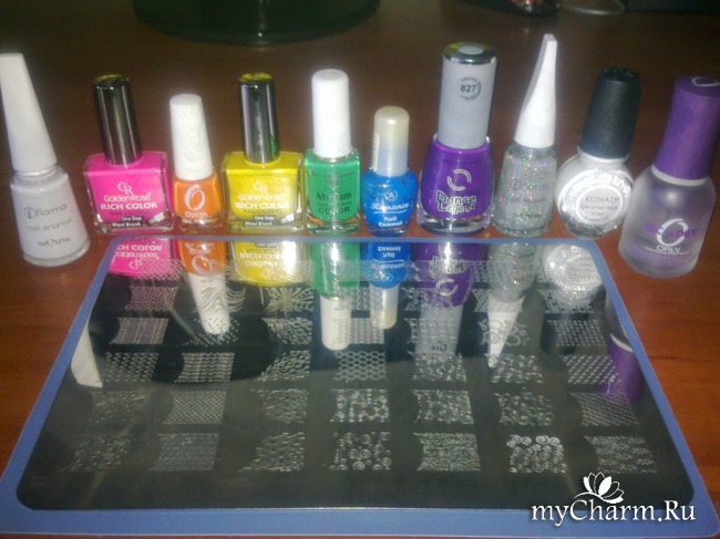 Поэтому в маникюре я решила использовать как можно большее количество лаков и не только их. И так приступим.Сначала участники: