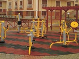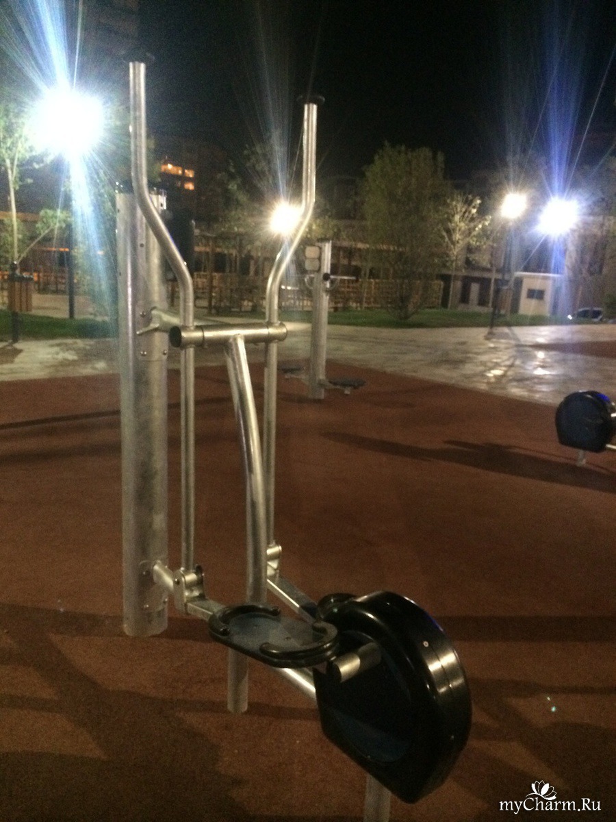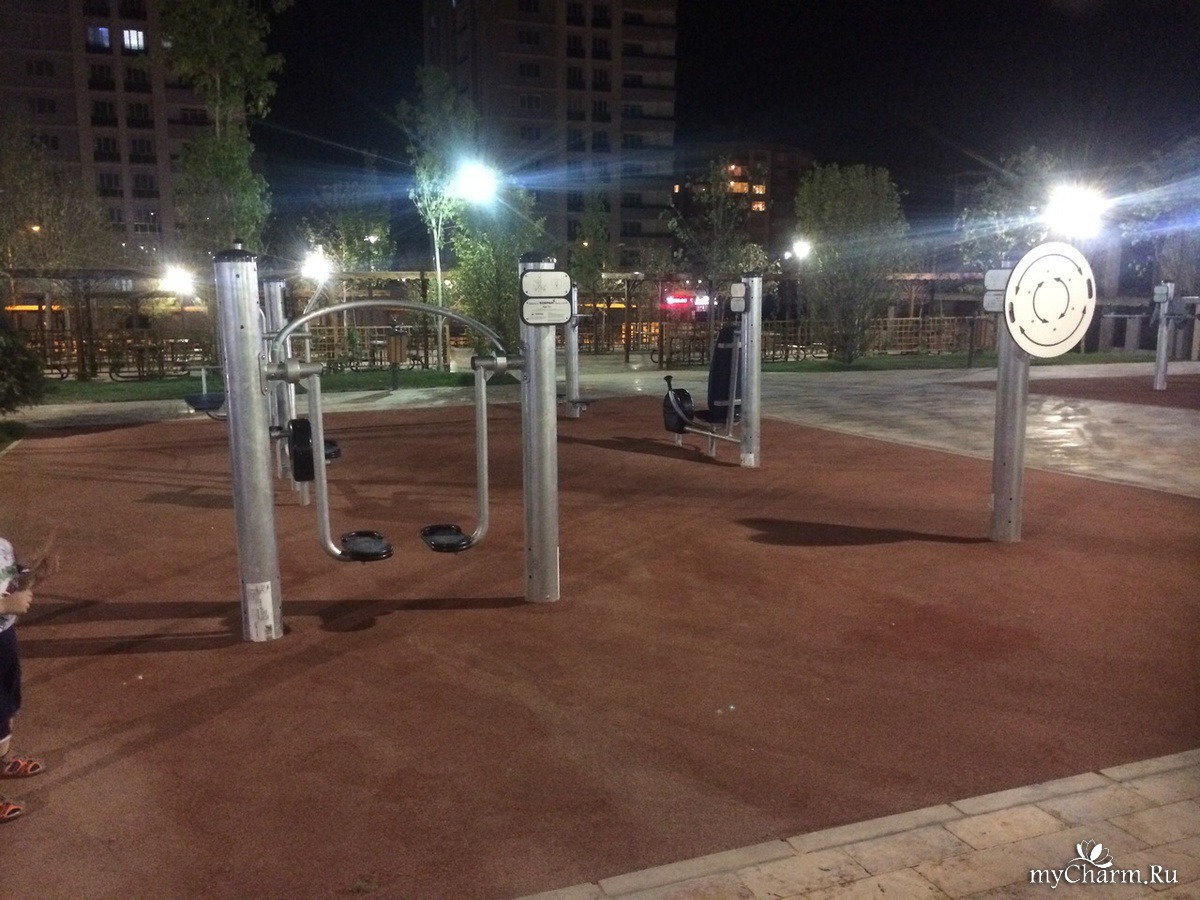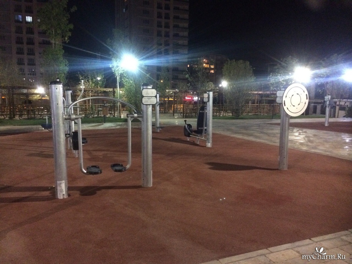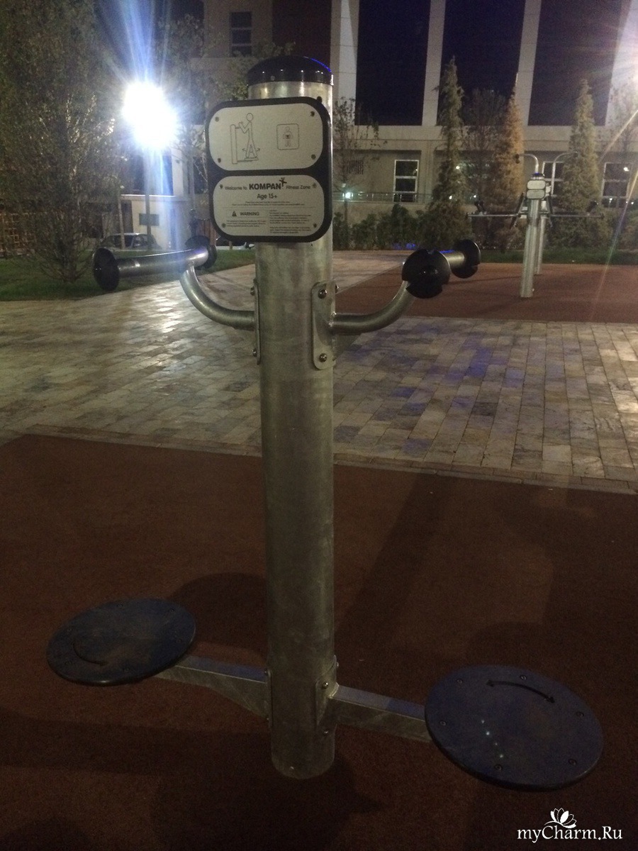 А теперь перейдём к спортивной площадке. Спортивная площадка раздлена на две части. Одна часть с турниками, скорее всего для мужчин или людей, имеющих специальную спортивную подготоку.