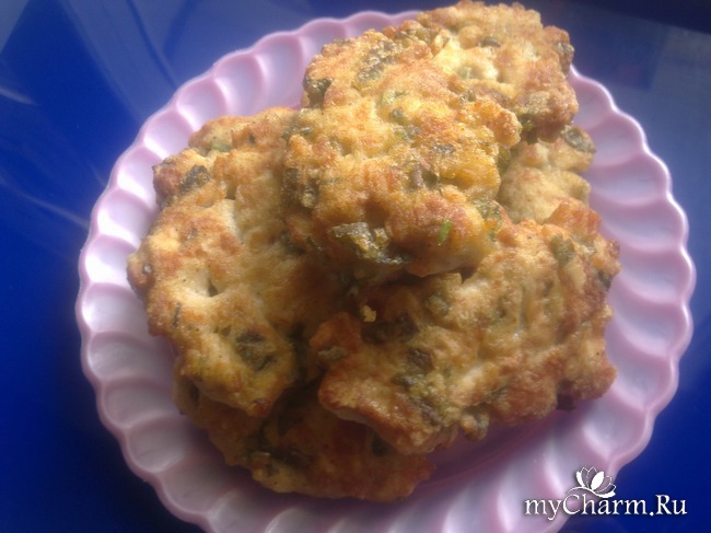 или вообще из рыбы сделать (если рыбка водянистая , то крахмала побольше, а майонеза поменьше) и зеленюшки много