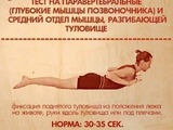 Тест на поясничный отдел мышцы, разгибающей туловище. Это упражнение мне показалось выполнимо только продвинутым йогам. Т.е. для меня вообще нереально. У кого-то получается?