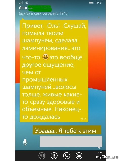 Кстати, вот отзыв моей постоянной клиентки, которая года два мыла голову и ухаживала за волосами OLIcosmetics, но мы же всегда ищем что-то нвоое, лучшее... купила что-то другое, потом я два месяца не могла сделать ей шампунь (я вообще неожиданно для себя выпала из рабочей жизни)...