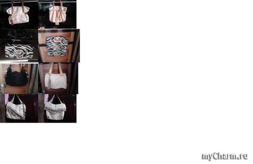 В первой - вставка посередине под змеинную кожу; 2 - зимняя, попроще; 3 - клатчем или в развернутом виде: она из металлической кольчужки чёрно-белой вся; 4 - черная - замшевая; 5 - белая меховая с золочёными кож. ручками; 6 - эта с воланами, она сейчас со мной